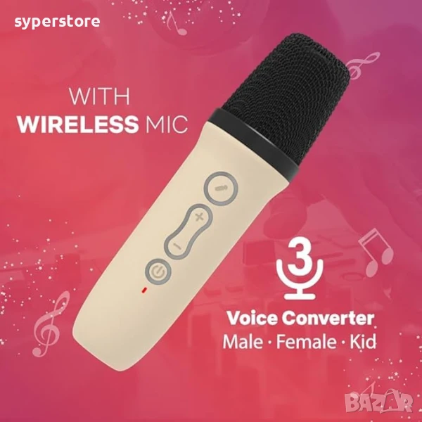 Тонколона преносима, Bluetoot, караоке, Digital One SP01079, безжична, блутут, с 2 микрофона, за деца, идеален подарък, colorful karaoke sound system