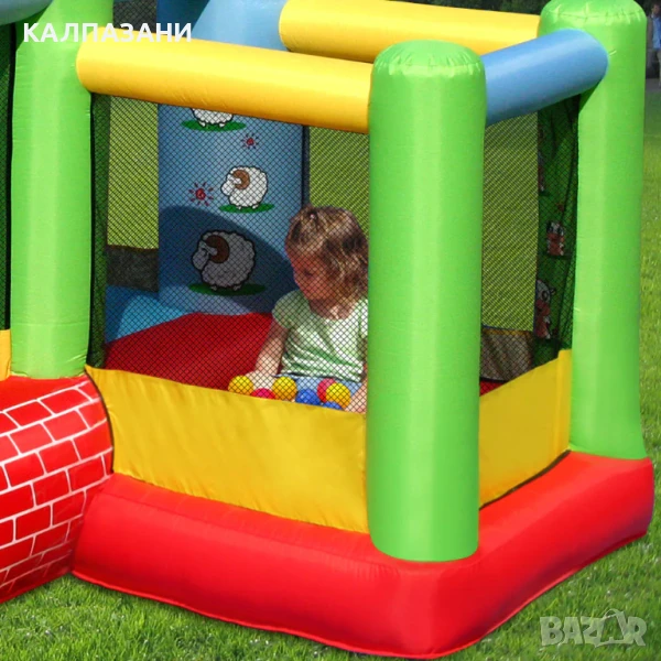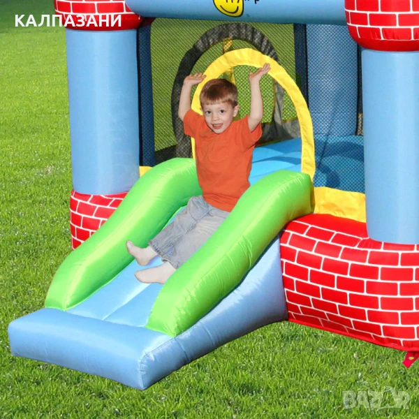 Батутът замък за игра на Happy Hop е идеалният избор за активни деца, които обичат да играят навън! Със своята цветна и забавна конструкция, този надуваем батут е перфектното допълнение за всяка градина, двор или място за забавления на открито. С включени атракции като пързалка и басейн с топки (с включени 30 пластмасови топки), той предоставя разнообразие от занимания, които ще забавляват децата за дълго време.