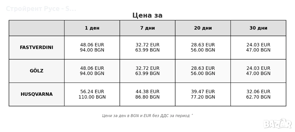 Стройрент/Stroyrent предлага оборудване и механизация под наем.