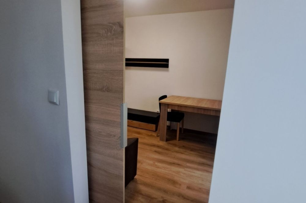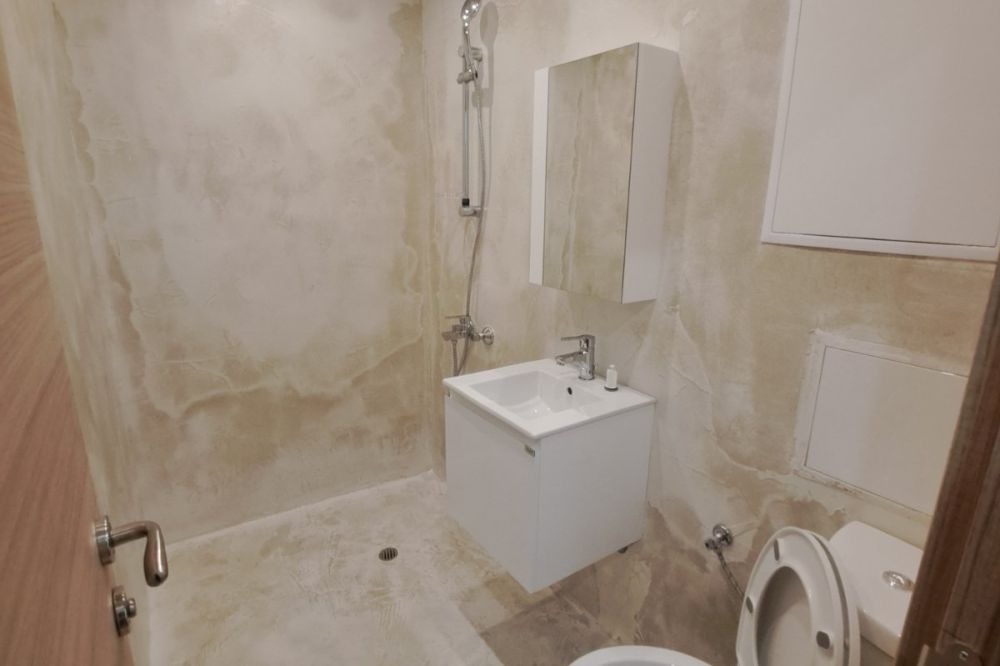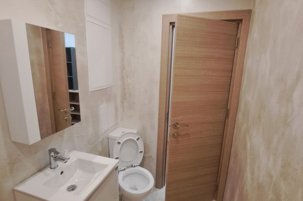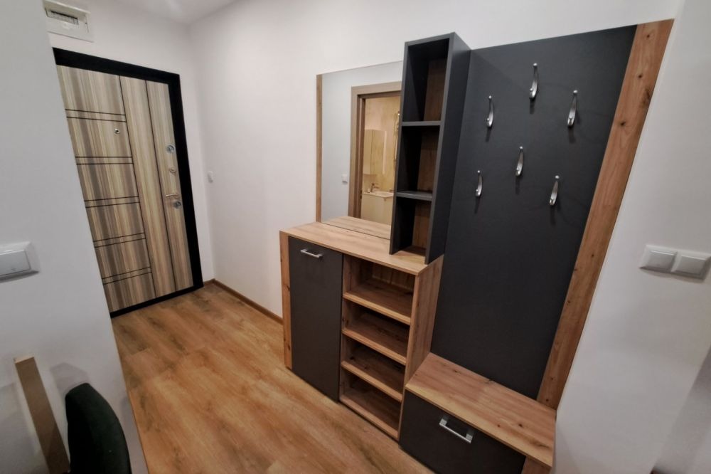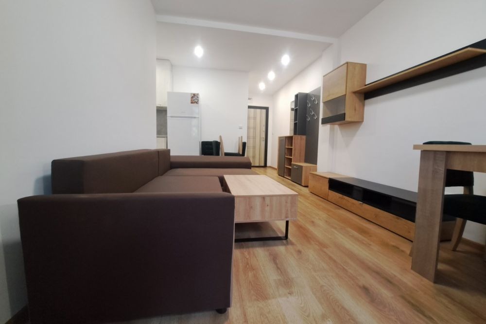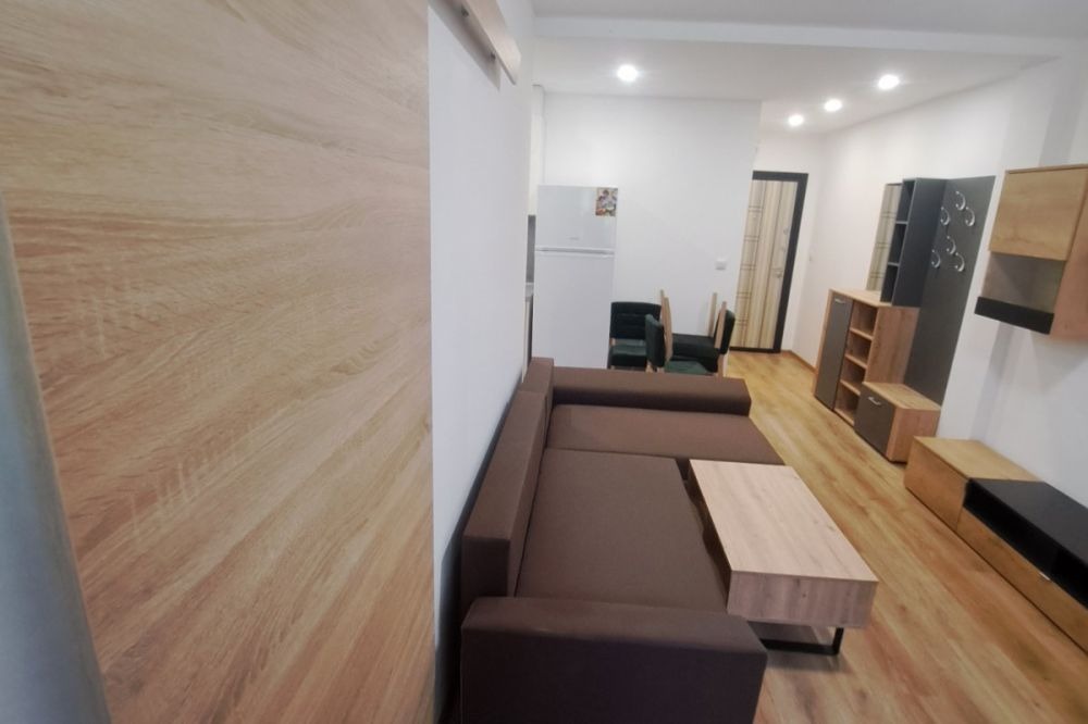 Двустаен обзаведен апартамент със застроена площ от 46 кв.м. Състои се от: коридор, дневна с трапезария и кухненски бокс, спалня, баня с тоалетна. Към жилището има и офис с площ от 22 кв.м. също и паркомясто, което влиза в цената.
