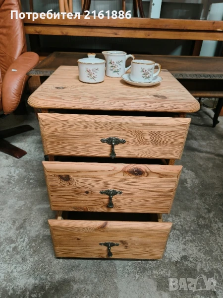 N 3802 Шкафче с три чекмеджета, месингови дръжки и размери 47/41 см и височина 60 см. За по голямо удобство шкафчето е на колелца. Телефон за връзка 0879025807
