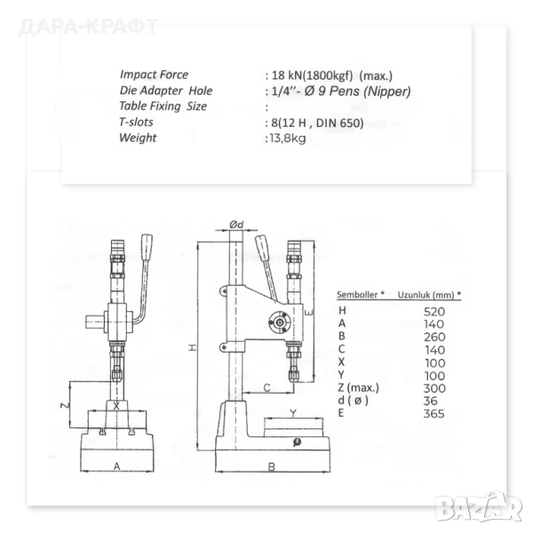 Употреба: пресата в комбинации с матриците и ножовете, предлагани в магазина, се използва за поставяне на рапиди, капси, тик-так копчета, за обличане на копчета и много други ремонтни дейности в кожарството, производството на дрехи, обувки, чанти, раници и др.