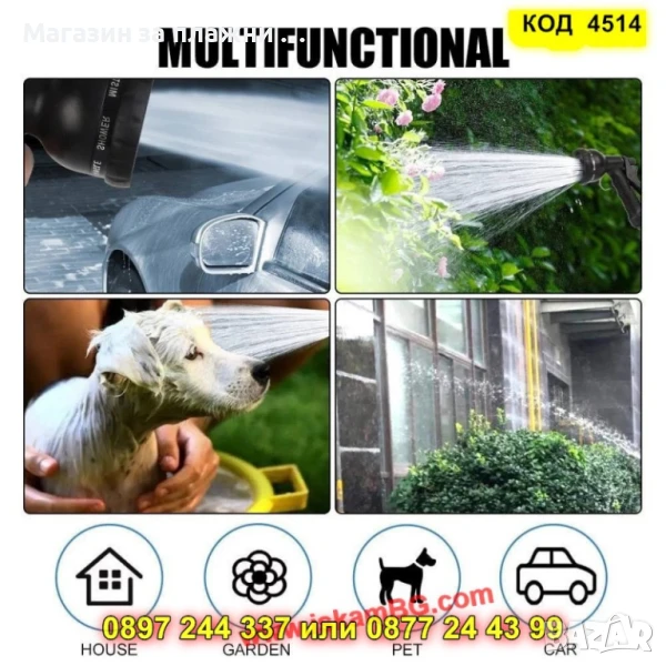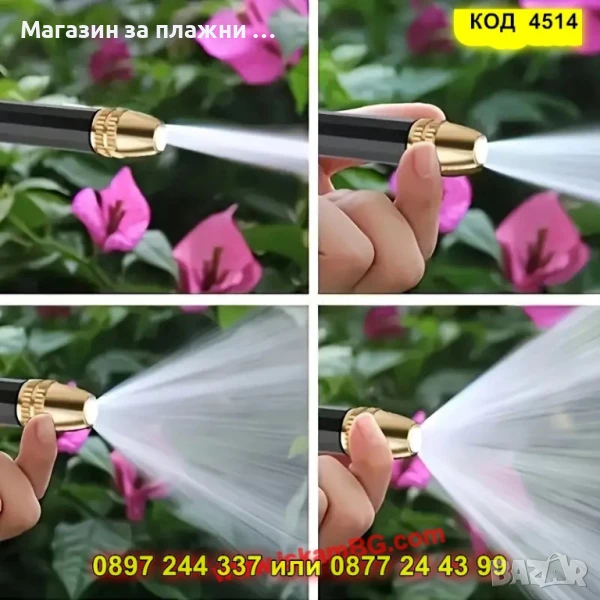 Изработен от устойчиви материали, маркучът не се заплита и не се прегъва. А благодарение на включения пистолет с регулируеми струи, поливането и миенето на двора, колата или терасата стават по-лесни и забавни от всякога.