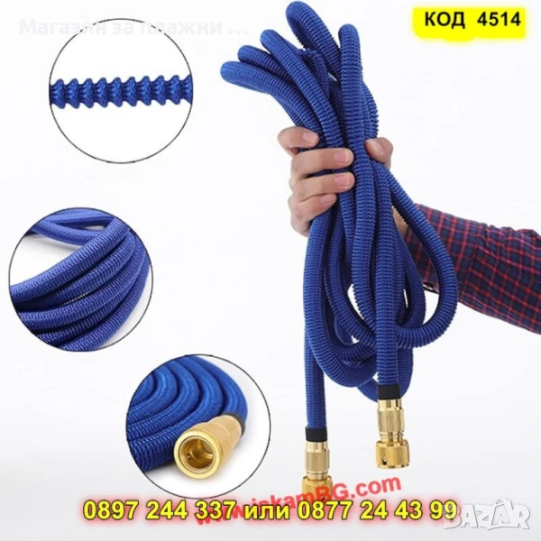 Разтягащ градински маркуч от 7.5 до 22.5 метра - 1 брой