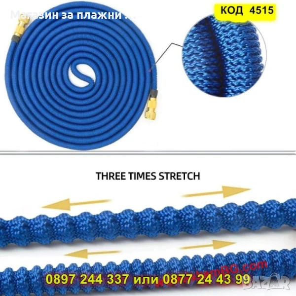 Разтягащ градински маркуч от 7.5 до 22.5 метра - 1 брой