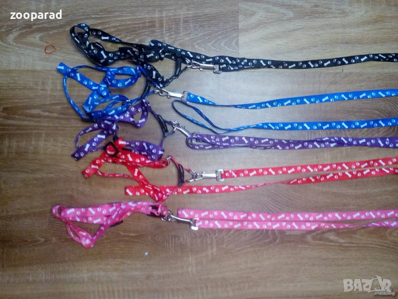 повод, 1.2м; нагръдник/гръдна обиколка 28-42см/, различни цветове - 2,5е/бр. (последна снимка); 1.5см-лента