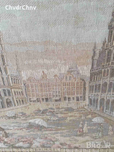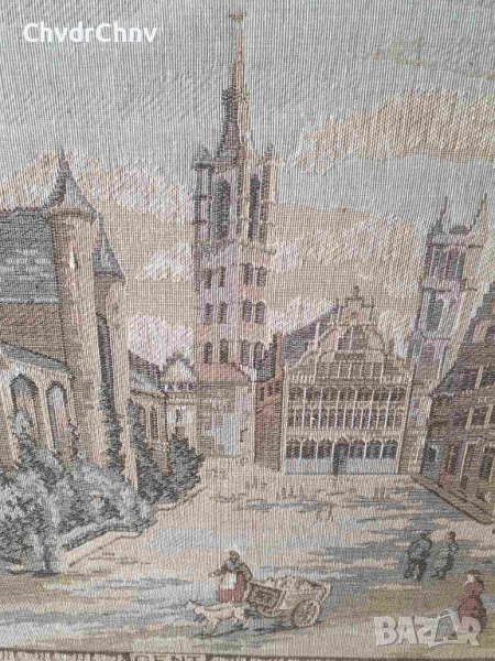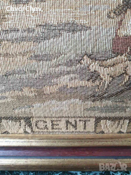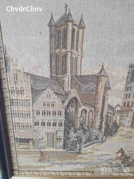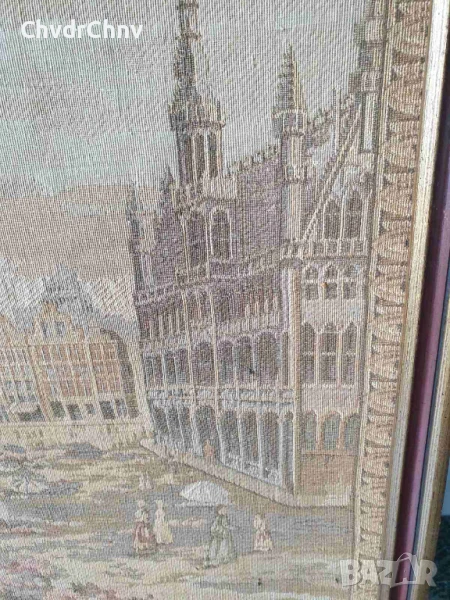 Гент-Брюксел 54см/2бр стари финни белгийски гоблени/средновековен градски пейзаж/дървена рамка