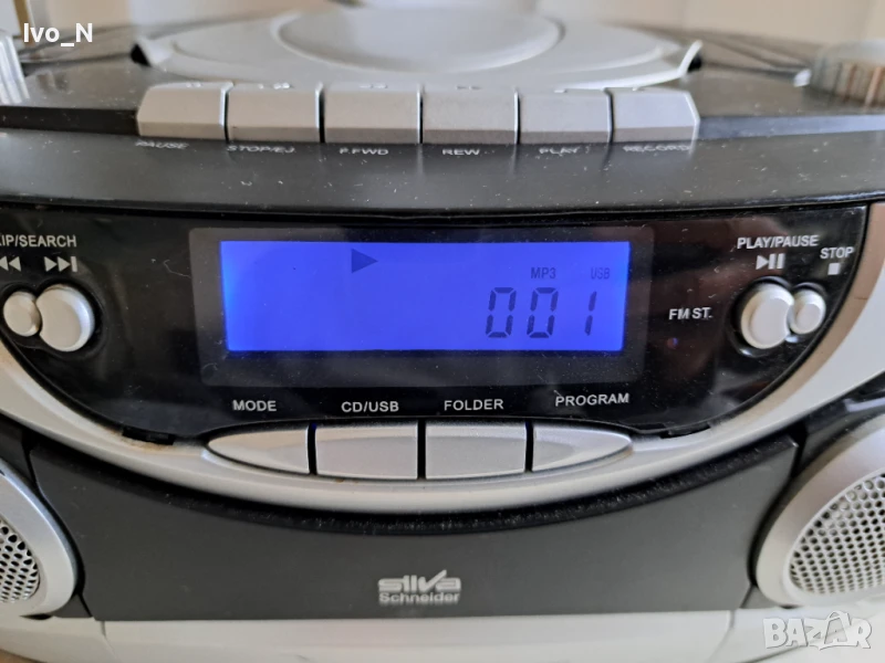 Устройството е в много добро външно и техническо състояние. Всичко работи, без касетофона. AM/ FM стерео радио тунер. CD плейър също за MP3 компактдискове. USB порт. 3,5 mm AUX вход за връзка с други устройства. 3.5 мм аудио жак за слушалки. LCD дисплей. Ултра бас система. Захранване 230v или 8 батерии R20. Включен захранващ кабел. Изпращам с Еконт с преглед и тест. Крайна цена.
