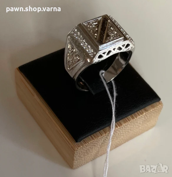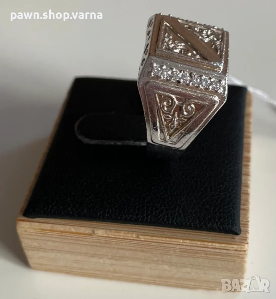 Мъжки сребърен пръстен с фианити – проба 925 – 6,10 гр – размер 19,5 мм – НОВ