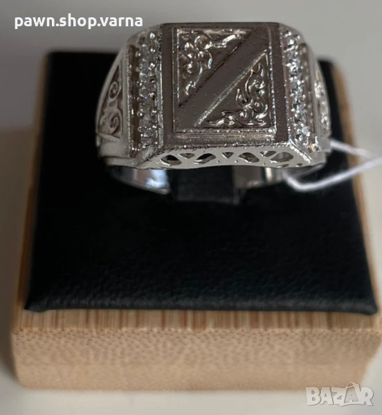 Впечатляващ мъжки сребърен пръстен с инкрустации от фианити – чисто нов, неизползван, с елегантно родиево покритие за допълнителен блясък и защита.