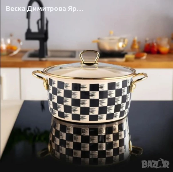 Тенджера Goldmann 24x15см. 6.2л./ 26x16см. 8.5л. Емайл. Индукция. Бял/Черен каре → Обява 50450599