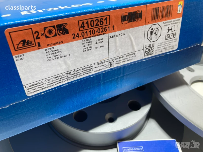 Спирачни дискове ATE за Ауди 80, А4 и Сеат Ексео / AUDI 80 B4, A4 (B6 & B7), SEAT Exeo