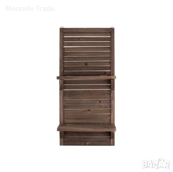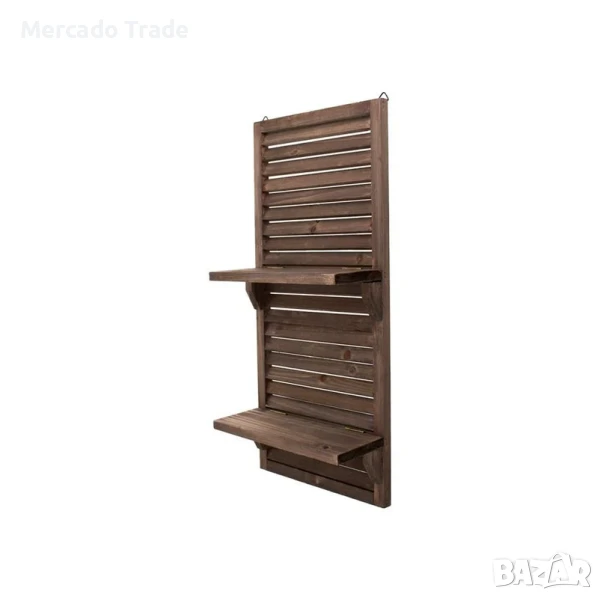 Декоративна висяща стойка за цветя Mercado Trade с щора за гръб и 2 сгъваеми рафта, в тъмнокафяв естествен цвят.