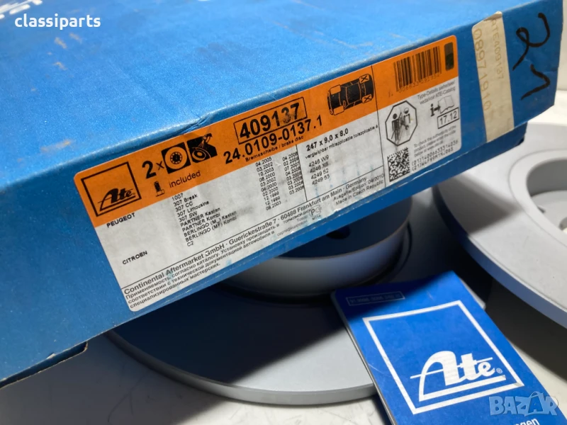 Спирачни дискове ATE за Ситроен С2, С3, С4, Берлинго, Ксара Пикасо, ПЕЖО 307, 1007 и Партнер