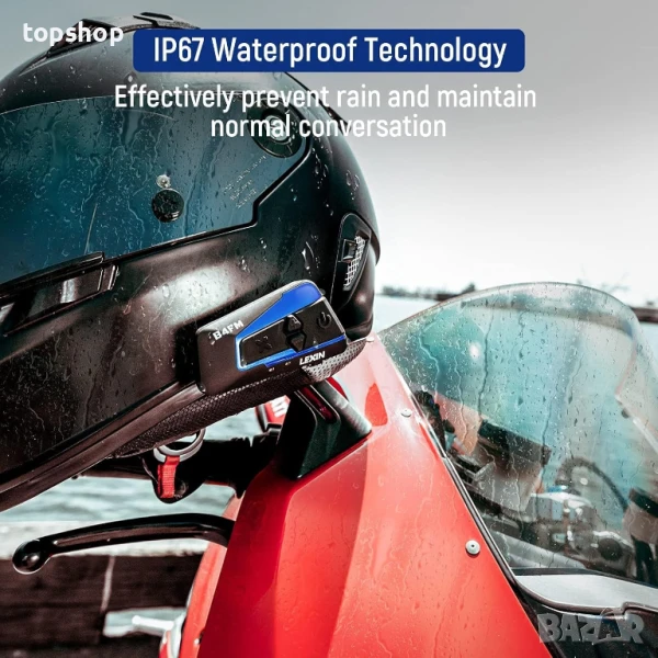 Нови 2бр. LEXIN B4FM Bluetooth слушалки за мотоциклет, блутут интерком за каска до 10 водача, универсална IP67 комуникационна система със споделяне на музика, шумопотискане, FM радио, 2 броя в пакета