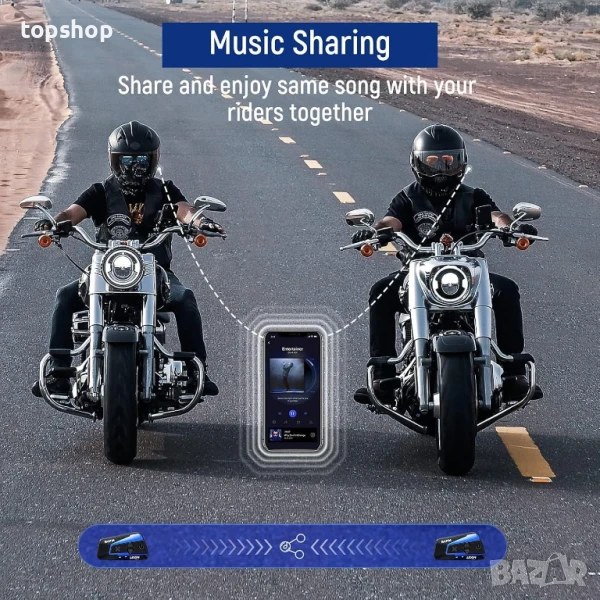 Споделяне на музика и Hi-Fi стерео звук: Bluetooth слушалките за каска B4FM позволяват на 2 ездачи да се наслаждават на една и съща песен с двойно щракване върху БУТОНА ЗА ЗАХРАНВАНЕ, разполага с коаксиални високоговорители Mylar, устойчиви на вятър микрофони и DSP/CVC технология за несравнимо 3D аудио качество. Нека се наслаждаваме на кристално чиста музика дори при скорости до 120 км/ч