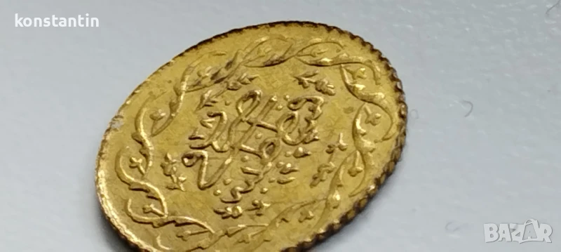 Монетата е държавен фалшификат на златна монета Турция;диам.15мм.;тегло 0,52гр.