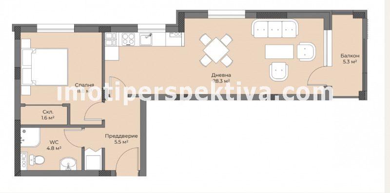 реф.16697 Супер модерна малка бутикова сграда на спокойно и тихо за живеене място ! Предлагаме ви просторен двустаен апартамент на среден етаж в новострояща се в напреднал строеж сграда с акт 14 ! Апартаментът се състои от просторен хол с трапезария и кухненски бокс , спалня с гардеробна , коридор , баня с тоалетна , тераса . Супер разпределение , локация и перфектно качество на строителството !
