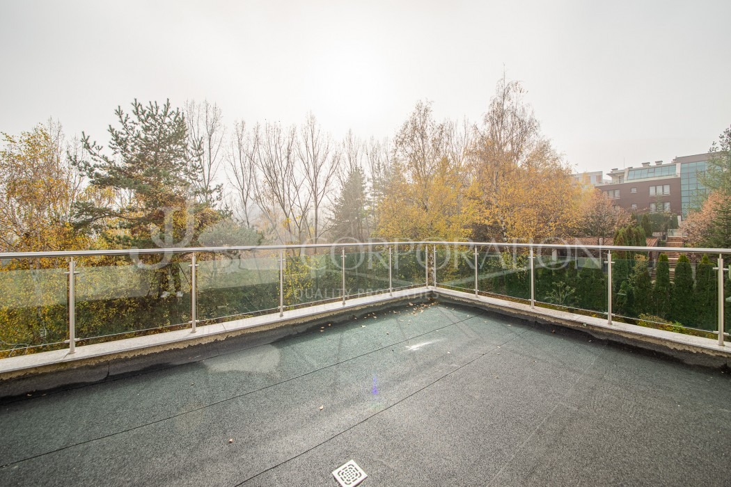 ВПЕЧАТЛЯВАЩ ПЕНТХАУС!НЕВЕРОЯТНИ ГЛЕДКИ!ТИХО И СПОКОЙНО МЯСТО!ЗАТВОРЕН КОМПЛЕКС! Предлагаме на Вашето внимание пентхаус, находящ се в малък бутиков комплекс, с отличен достъп, в района на Киноцентъра. Комплексът се отличава с невероятната си атмосфера, прекрасно озеленяване и чист въздух. Предназначен е за хора обичащи лукса и модерния начин на живот, близо до природата и с чудесен изглед към планината и столицата. Апартаментът е чисто нов, завършен е с висок клас материали и се отличава с 360 градуса панорама и великолепни тераси. Имотът ще бъде дообзаведен според нуждите на бъдещите наематели. Разпределение: входно антре, просторна дневна със сепарирани холна част с камина, трапезария и модерна вградена кухня, две прекрасни зимни градини, три спални, две бани с тоалетни, тераси. Отоплението е на ток. В цената е включена такса поддръжка и две паркоместа! Удобно е да се обаждате по всяко време! Работим с колеги по всички наши оферти! Водещ брокер: Николай Николов - 0887714407. Оферта номер:0409.