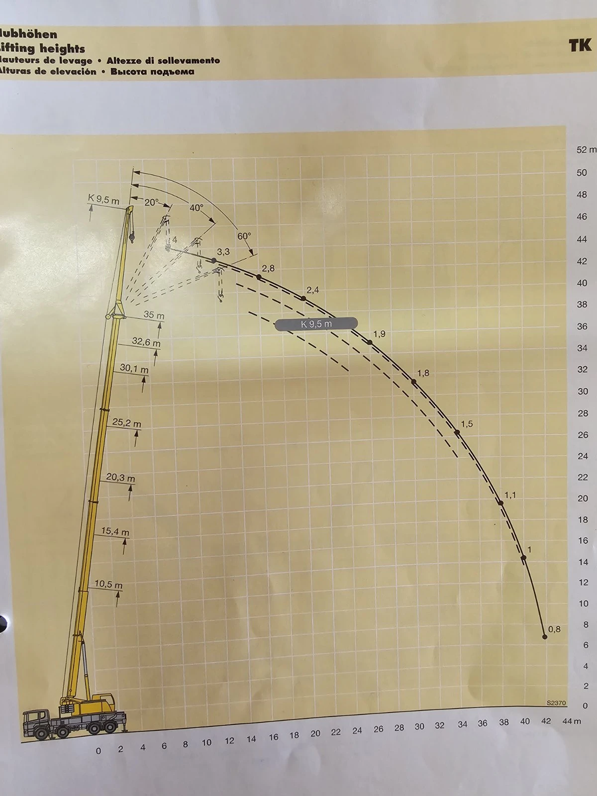 Нов внос. Перфектен. Пълна сервизна документация. 38 м- основна стрела 48 м- основна стрела с удължението 8 т- 4х2 тона- баласт 8х4 Без ръжди и хидравлични течове Горен двигател LIEBHERR D934 S/200 к. с. Има и удължение към крана JIB 2 бр куки Нови гуми. Климатик. Готов за работа.