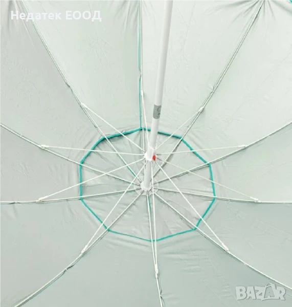 Плажен ветроустойчив чадър, Тюркоаз, UPF 50+, Ø2.25 м.