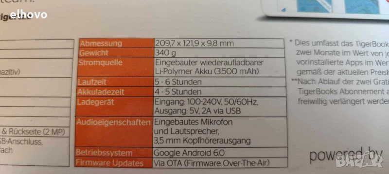 батерия вградена презареждаща се литиво-полимерна(3500mAh)