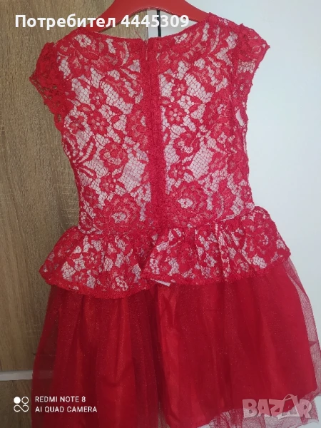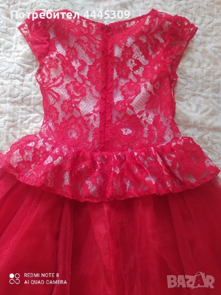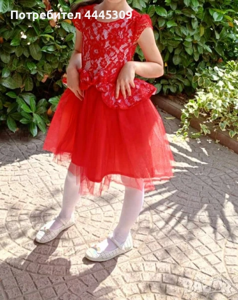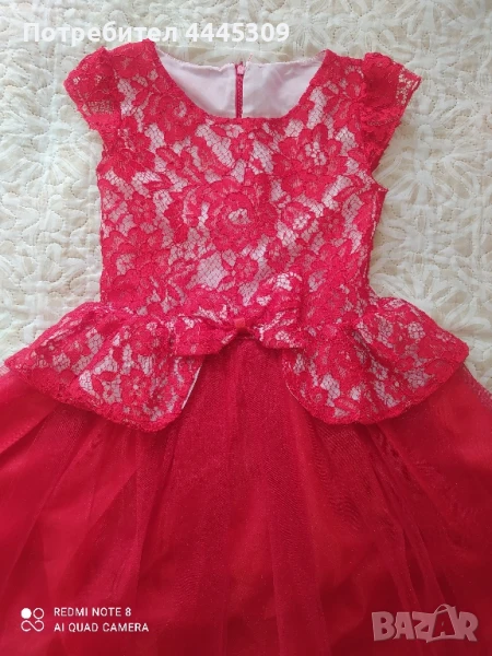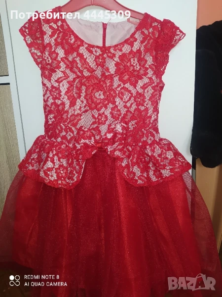 Разкошна рокличка в червен цвят,обличана няколко пъти по поводи и в безупречно състояние.Носи се с болеро, българско производство!