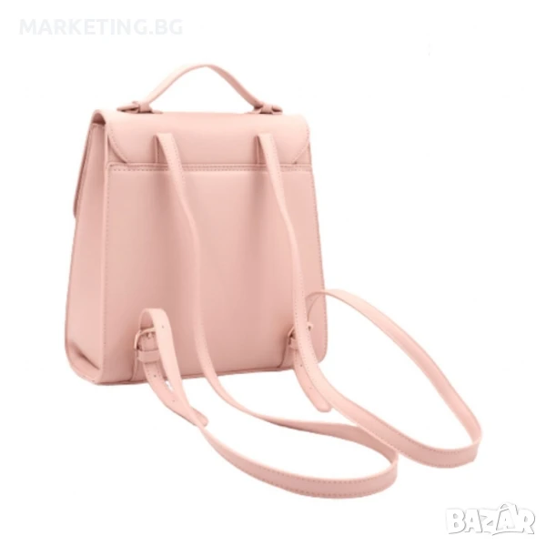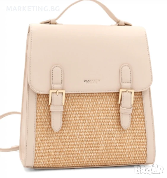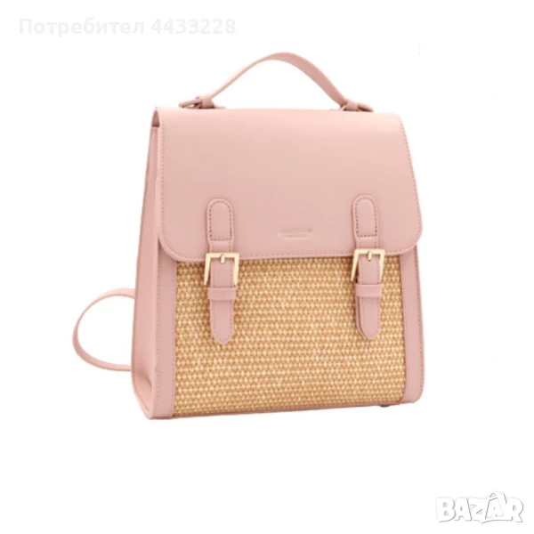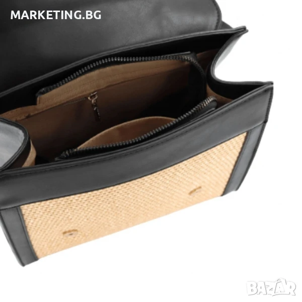 Раницата впечатлява със своето елегантно съчетание на е к о к о ж а и плетени сламени панели в предната част.