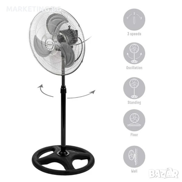 Индустриалният вентилатор на стойка Muhler 3в1, с мощност 70W и диаметър 18 инча, е перфектното решение за осигуряване на ефективно охлаждане във всяко пространство.