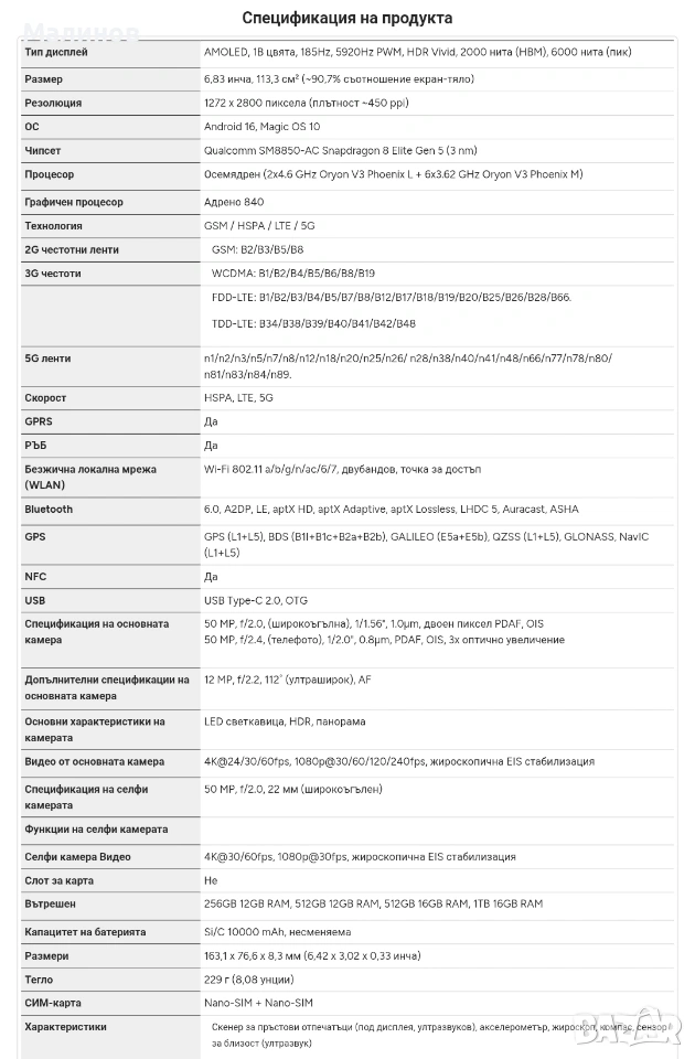 Honor WIN Dual sim 5G с 10 000mAh батерия!!! c BG меню и Android auto от Get Mobile