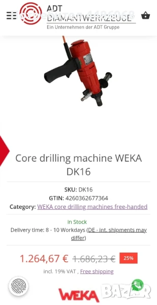 Машина за диамантено разпробивна бормашина, ядково пробиване WEKA DK16, снимка 1 - Диамантени и режещи инструменти - 50457538 Машина за диамантено разпробивна бормашина, ядково пробиване WEKA DK16, снимка 2 - Диамантени и режещи инструменти - 50457538 Машина за диамантено разпробивна бормашина, ядково пробиване WEKA DK16, снимка 3 - Диамантени и режещи инструменти - 50457538 Машина за диамантено разпробивна бормашина, ядково пробиване WEKA DK16, снимка 4 - Диамантени и режещи инструменти - 50457538 Машина за диамантено разпробивна бормашина, ядково пробиване WEKA DK16, снимка 5 - Диамантени и режещи инструменти - 50457538 Машина за диамантено разпробивна бормашина, ядково пробиване WEKA DK16, снимка 6 - Диамантени и режещи инструменти - 50457538 1/6