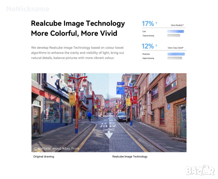 • Технология за изображения Realcube - по-цветна, по-жива: Разработваме технология Realcube Image, базирана на алгоритми за усилване на цветовете, за да подобрим яснотата и видимостта на светлината, да извадим естествени детайли и да балансираме изображенията с по-живи цветове.