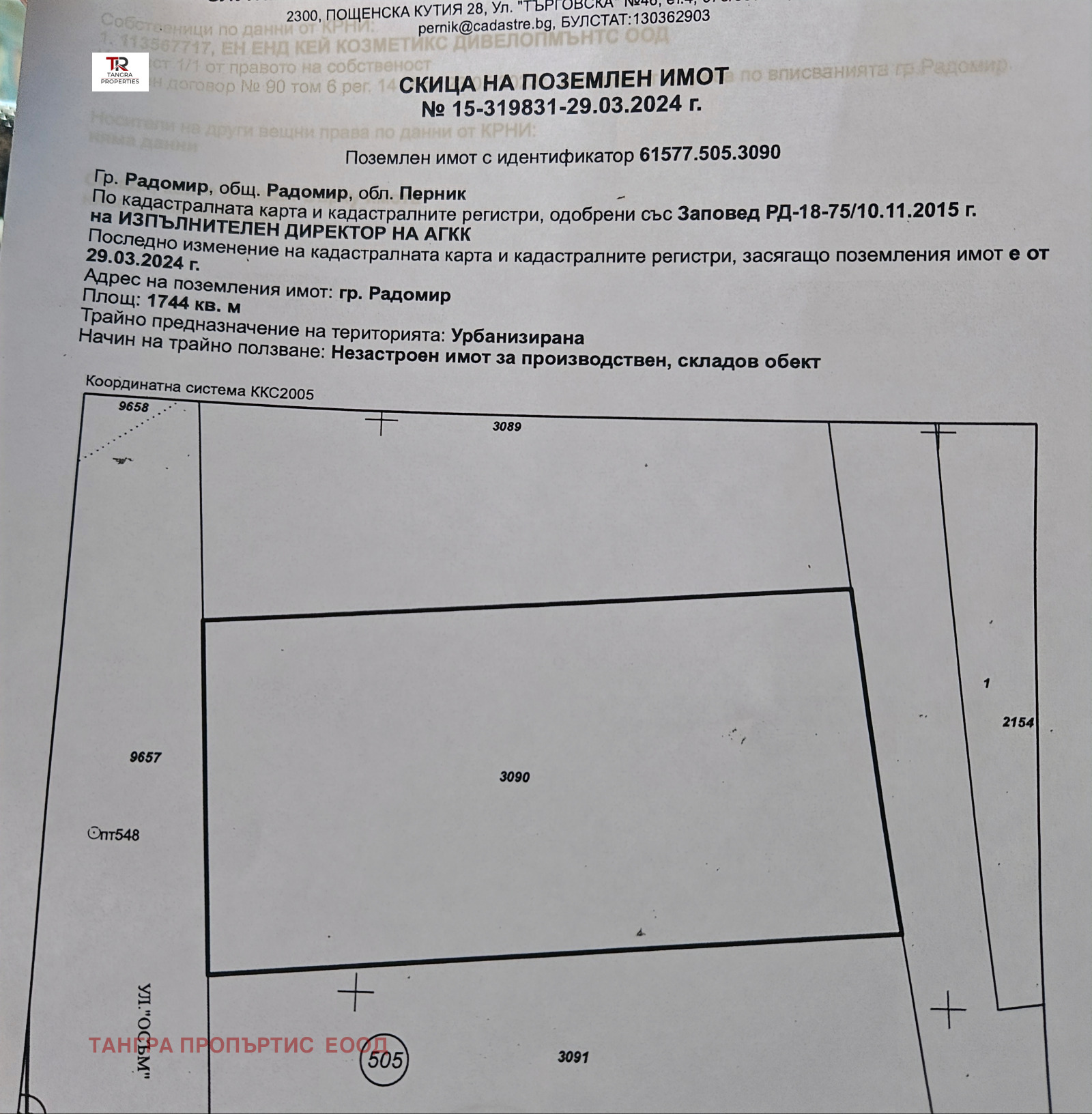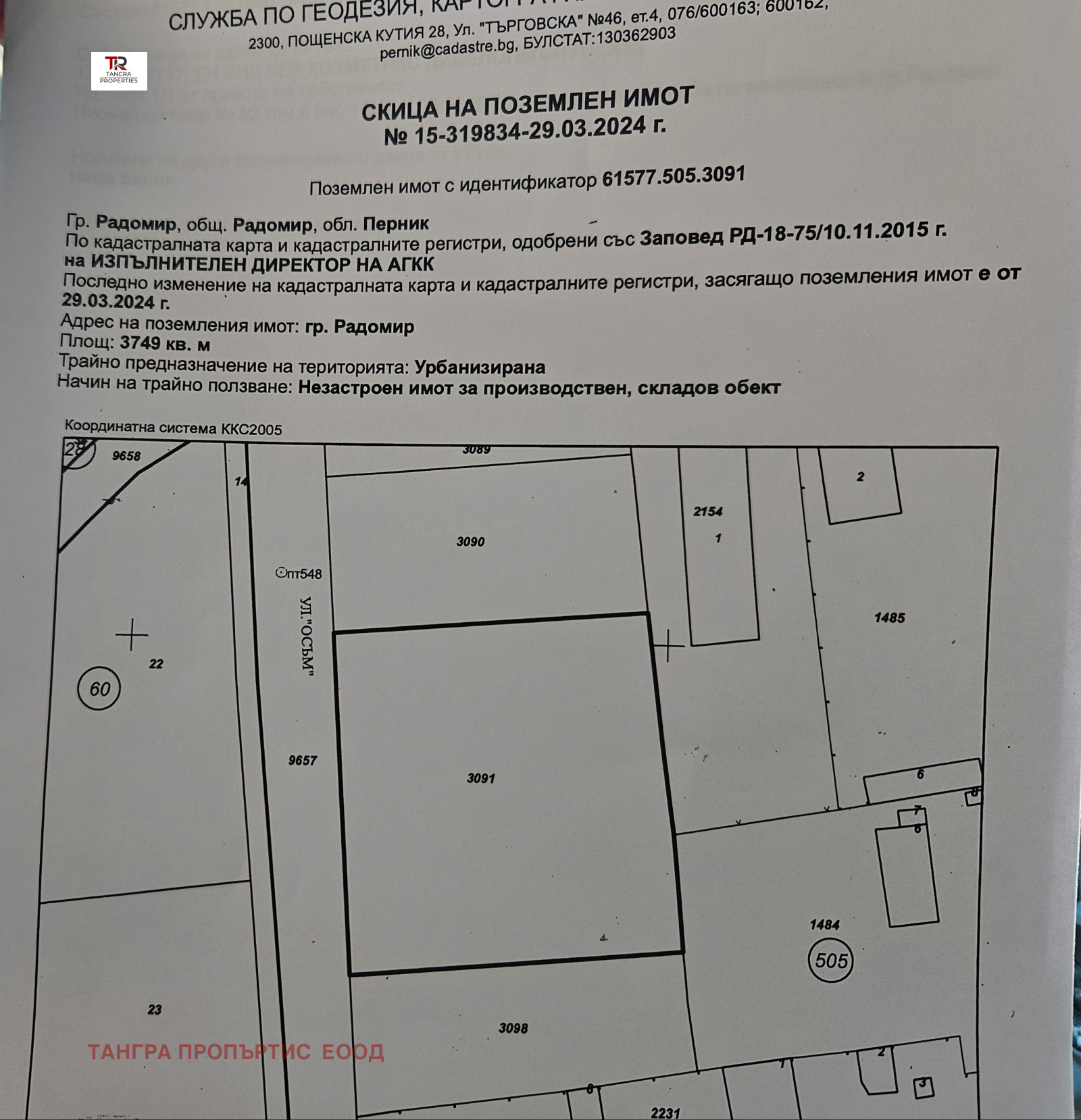Агенция Тангра пропъртис продава тристаен съседни парцела в гр.Радомир ,обл.Перник.
