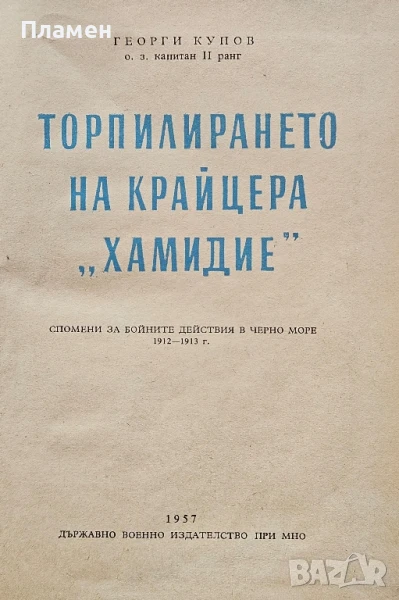 Георги Купов - Торпилирането на крайцера "Хамидие". Спомени за бойните действия в Черно море 1912-1913г. -издание 1957г. с твърди корици в 92 страници -22 лв.