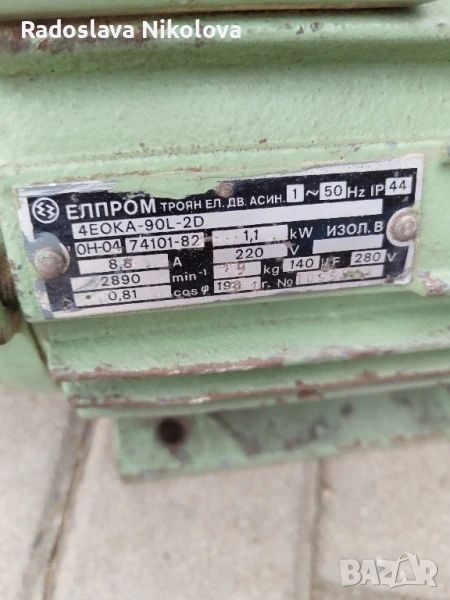 Електро двигател Мотор 1,1кв 2890 обр , снимка 1 - Електродвигатели - 50458905 Електро двигател Мотор 1,1кв 2890 обр , снимка 2 - Електродвигатели - 50458905 Електро двигател Мотор 1,1кв 2890 обр , снимка 3 - Електродвигатели - 50458905 Електро двигател Мотор 1,1кв 2890 обр , снимка 4 - Електродвигатели - 50458905 1/4