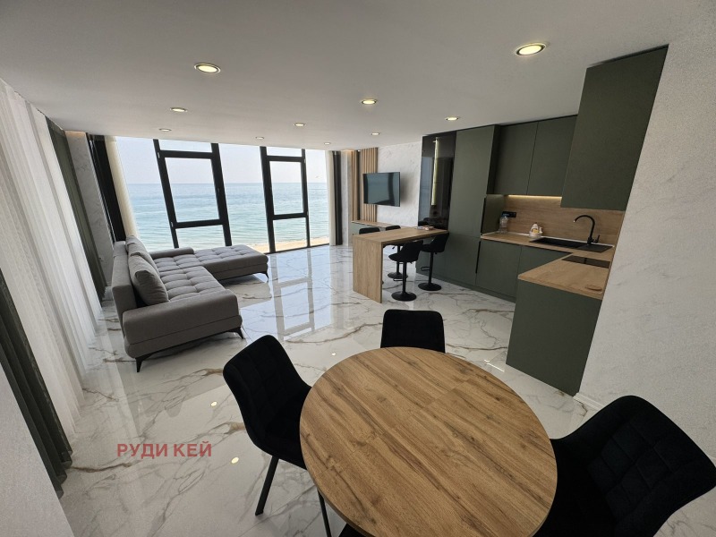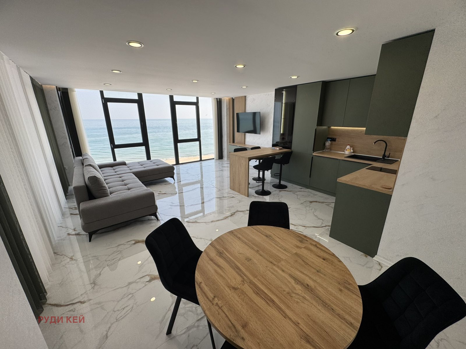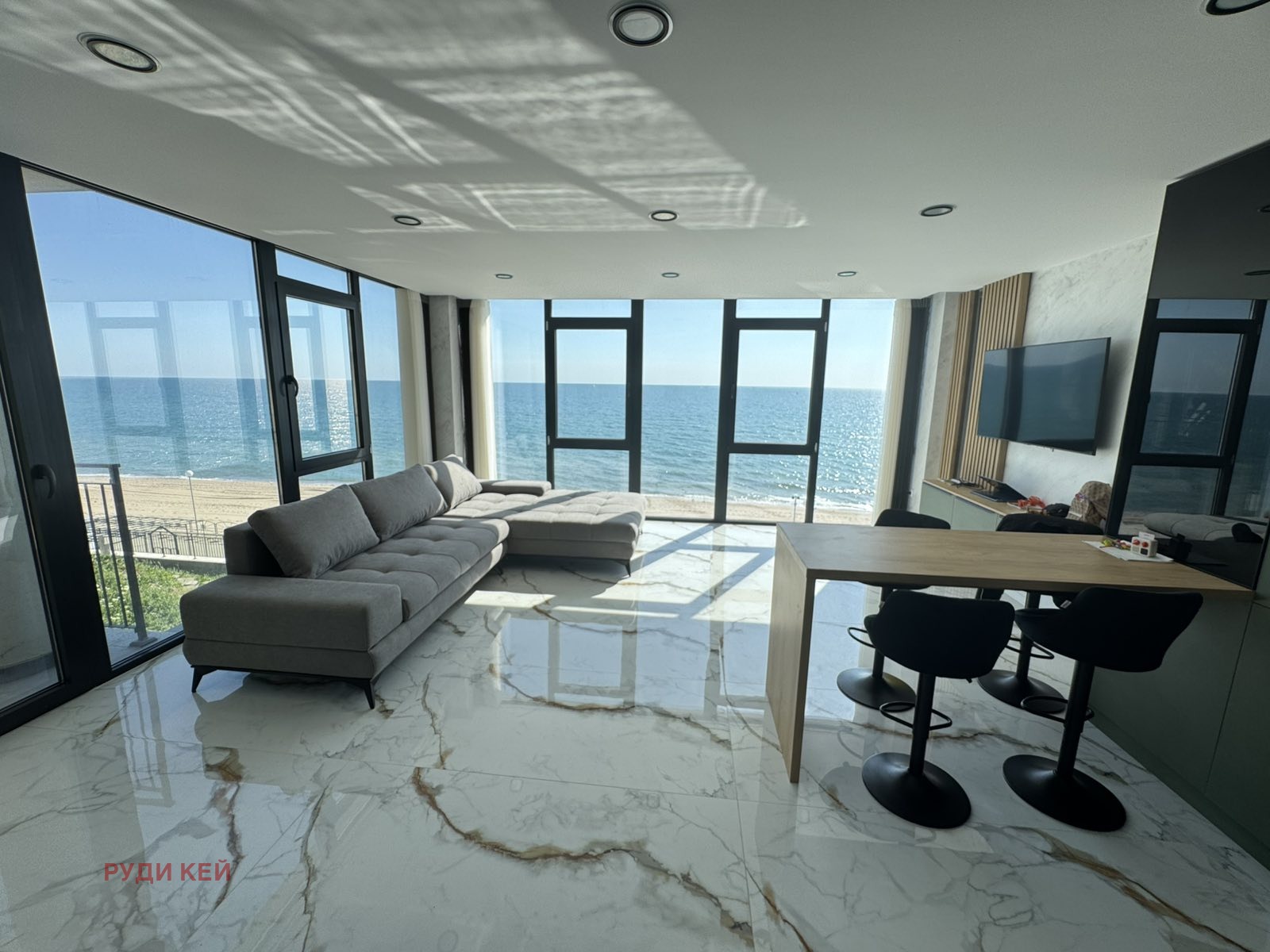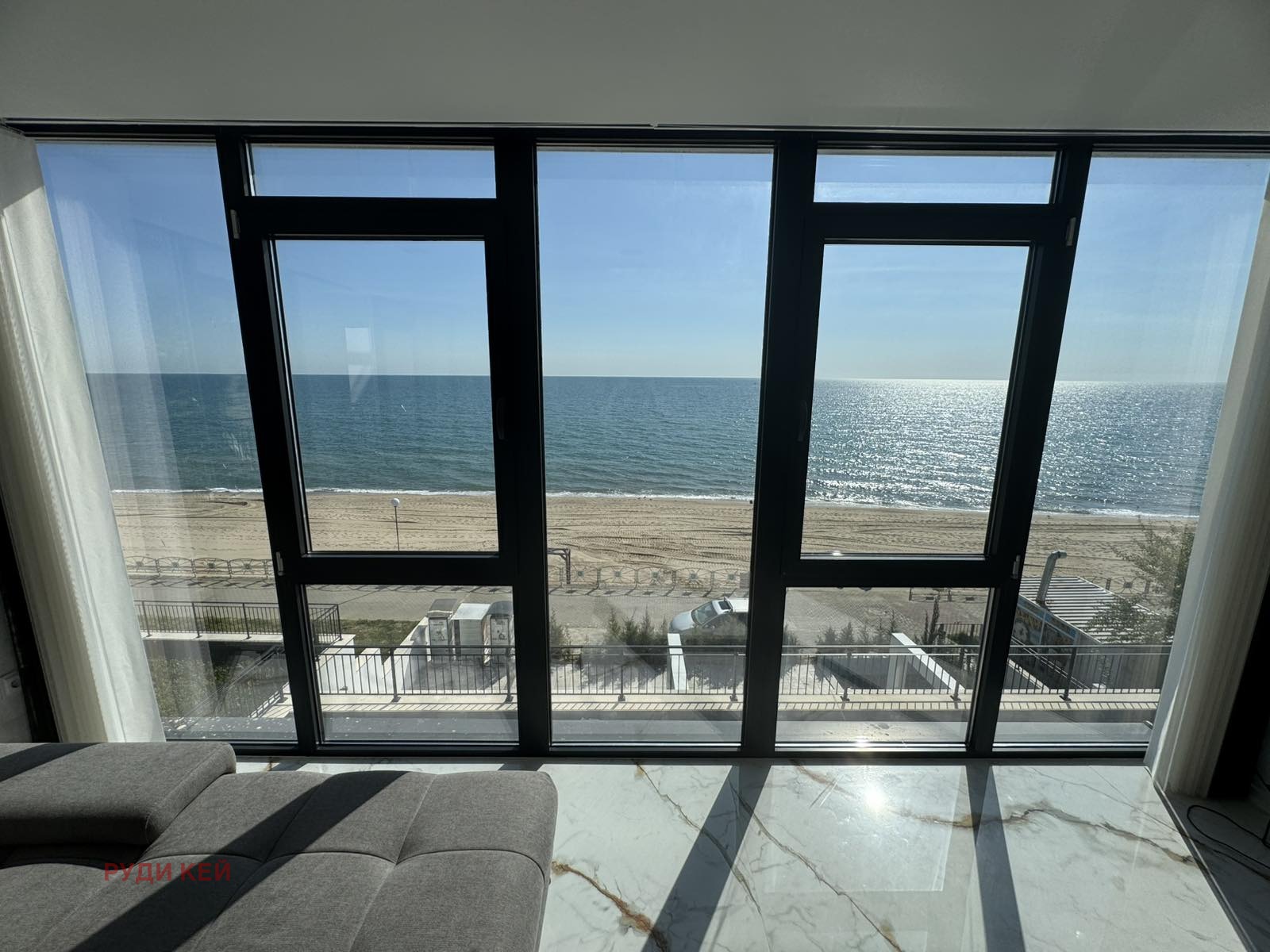 Агенция Руди Кей предлага тристаен апартамент с обща площ от 150 кв.м. Апартаментът е със следното разпределение :Голяма всекидневна с гледка към морето ,спалня с тераса, баня с тоалетна, още една по малка всекидневна с кухненски бокс ,спалня и санитарен възел. Този апартамент може да задоволи всеки вкус заради прекрасната си локация ,намира се на метри от плажа в гр.Обзор .Едно истинско бижу .Луксозна сграда на първа линия на централния плаж ,разполага със собствена спа зона с вътрешен басейн ,която работи целогодишно ,както и с външен басейн .Жилището може да бъде разделено на два отделни апартамента, подходящо както за живеене ,така и за инвестиция .