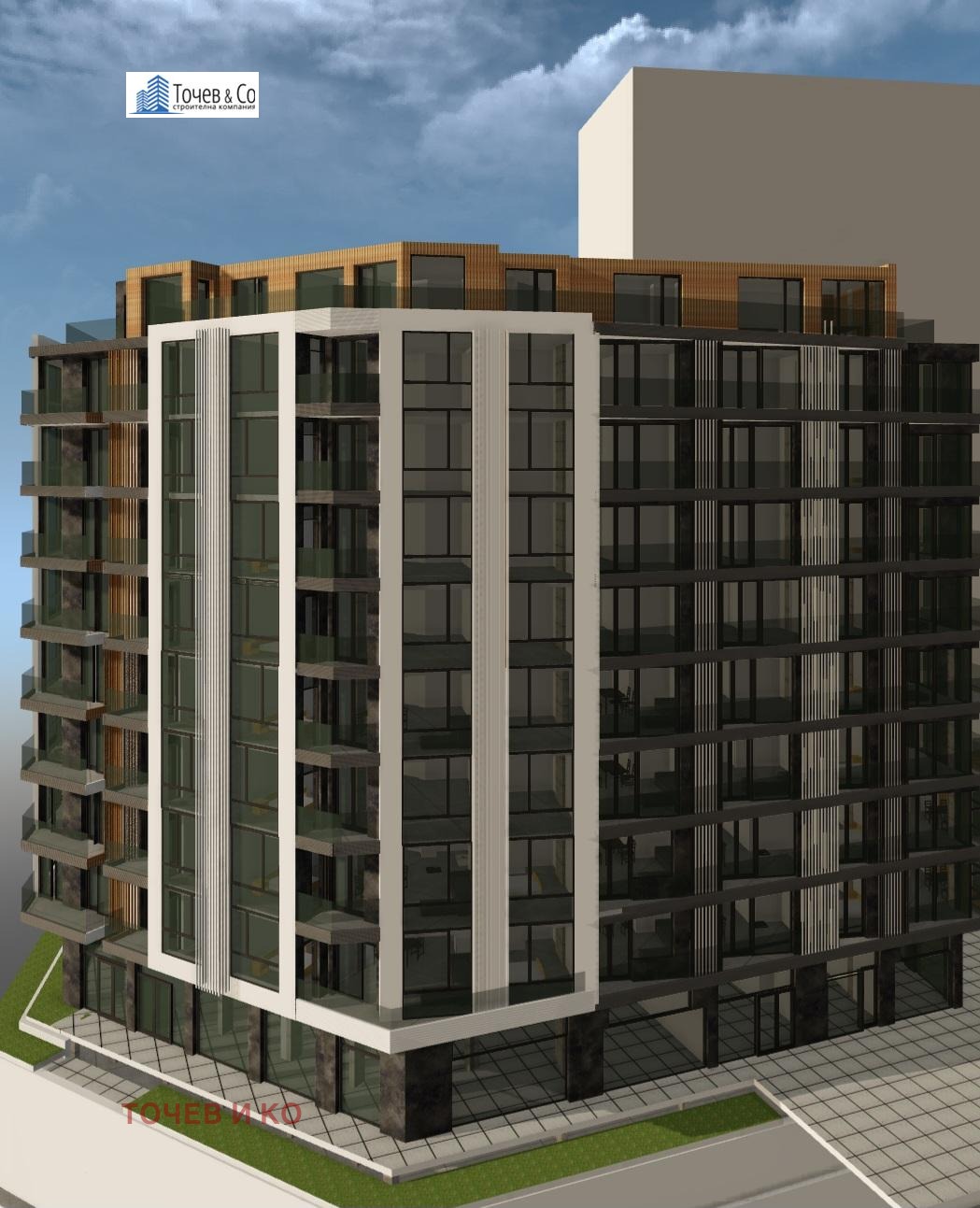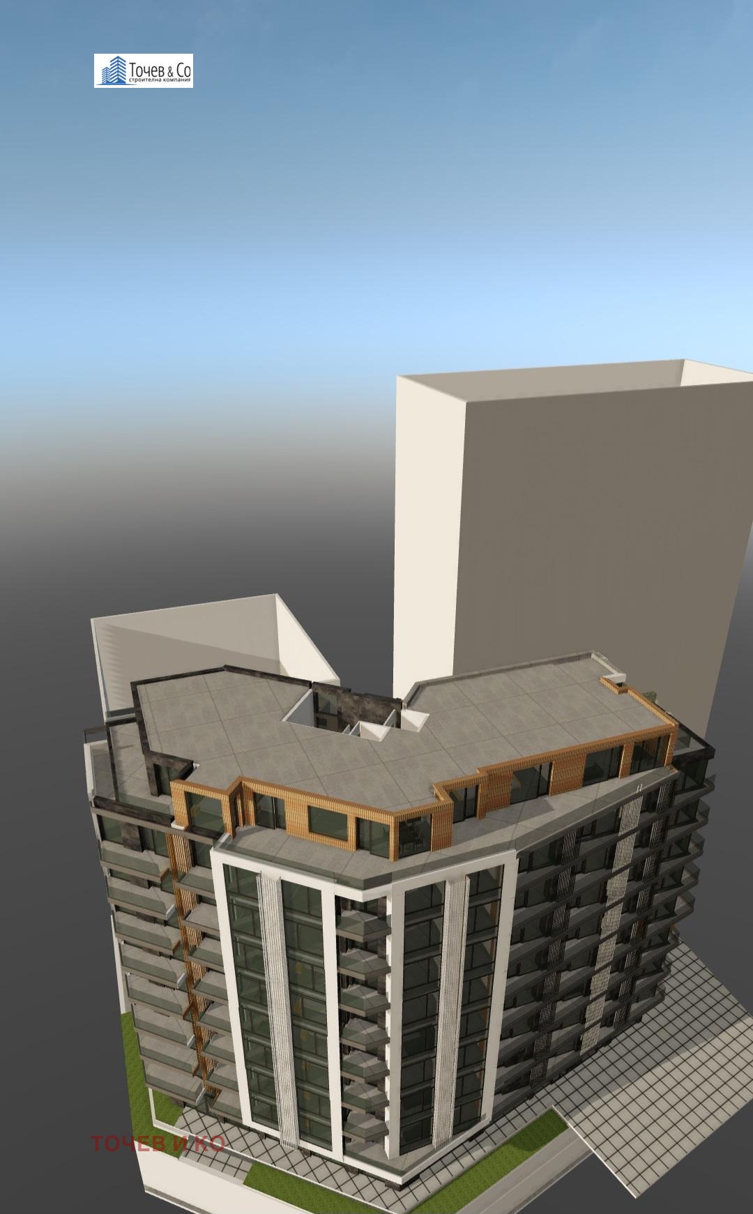 Тя ще бъде изградена с двустайни, тристайни, многостайни апартаменти и ателиета, с два асансьора, търговски площи-офиси и магазини, паркоместав подземен гараж на две нива- с рампа и платформа.. Издават се на тапа.