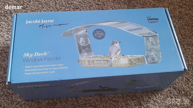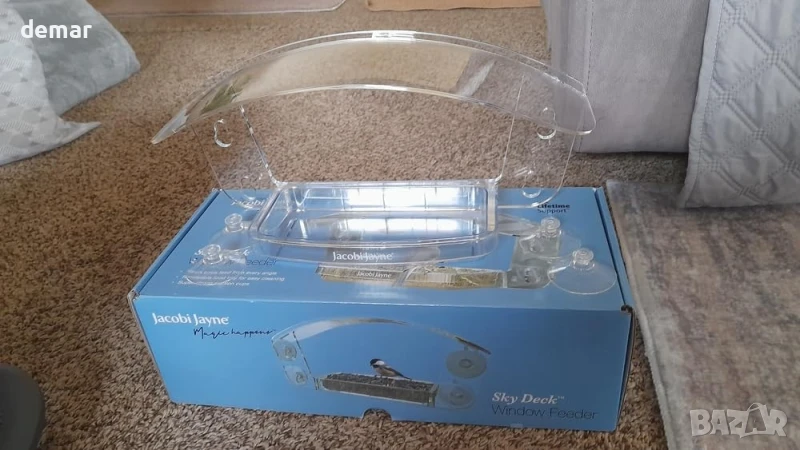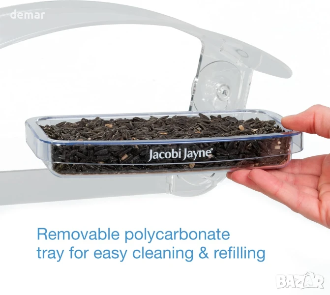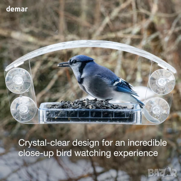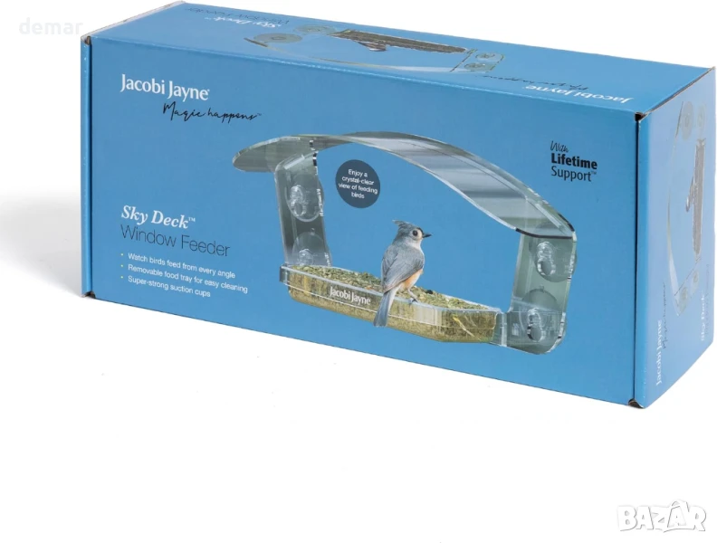 Прозрачна акрилна къщичка за птици с плъзгаща се тава - хранилка за прозорец Jacobi Jayne® Sky Deck™