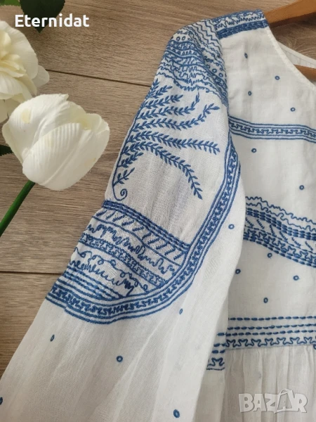 Изключително нежна избродирана блузка от фин 100% памук. Размер S/M.Гръдна до 96см, дължина 59см Цена 36лв