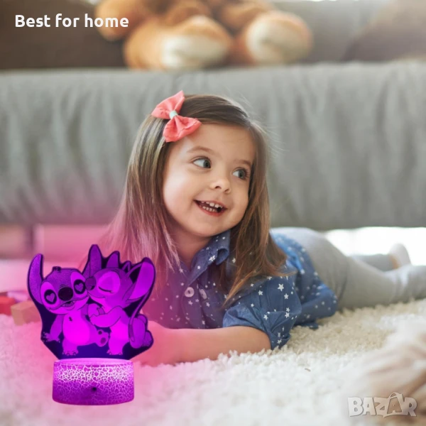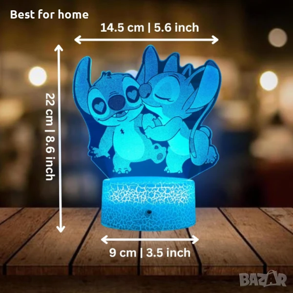 3D Нощна лампа Лило и Стич с дистанционно управление -16 цвята → Обява 50459541