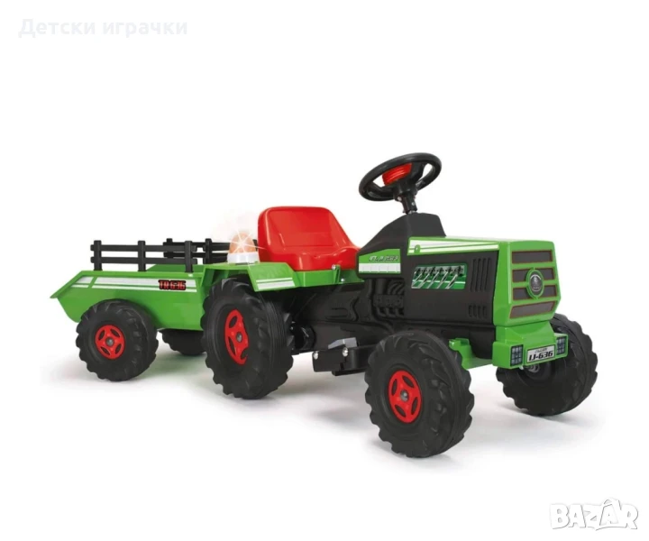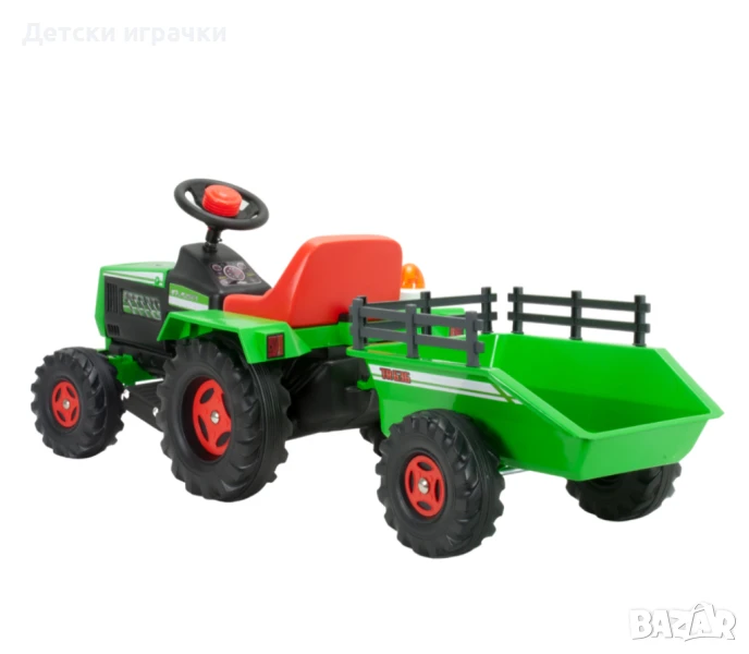 Детски трактор с ремарке Injusa, с батерия 6V, със сирена, червен