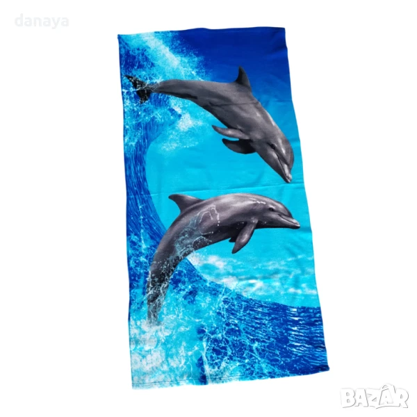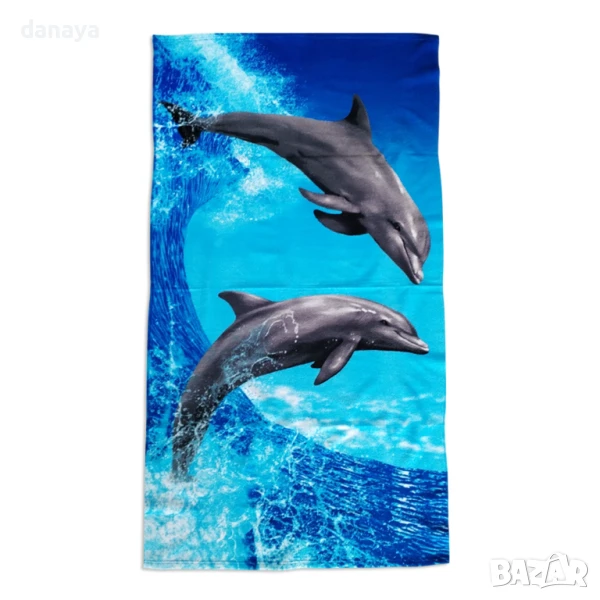 Потопете се в лятното настроение с нашата плажна хавлия Делфини. Съчетаваща комфорт, функционалност и морски чар. Със свеж и игрив дизайн с делфини, тя е перфектният аксесоар за плажа, басейна или спа уикенда.