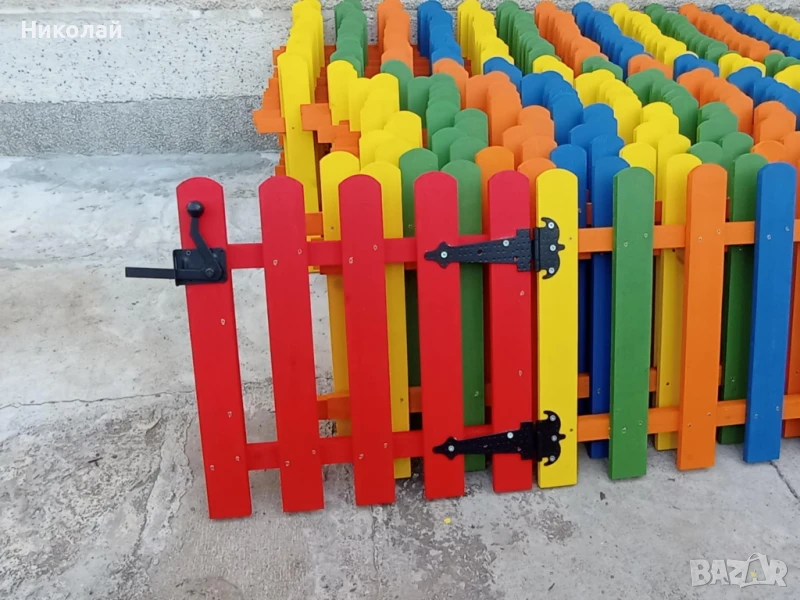 Декоративна дървена ограда с врата за двор градина заведение детска площадка детски кът оградни пана