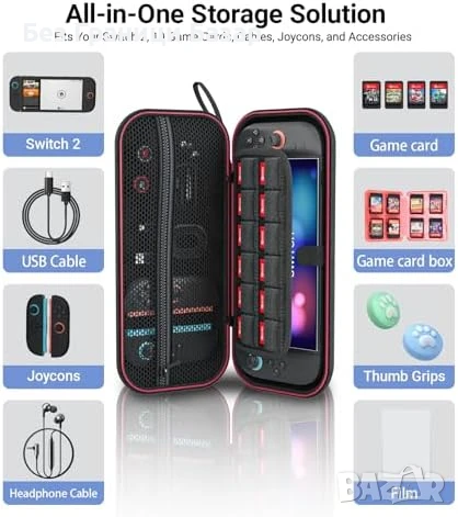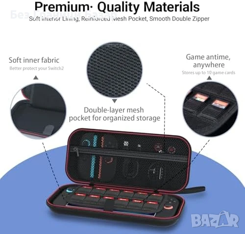 Нов Switch 2 Калъф с Джобове и Протектори – Комплект за Пътуване игри