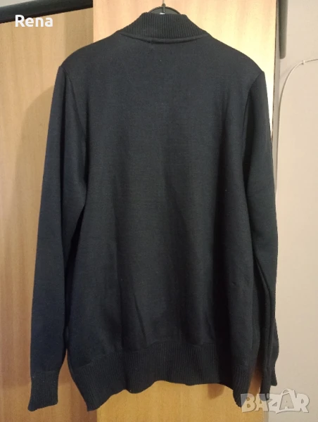 Черно мъжко яке от плат. На ръкава, яката и отдолу е с плетен ластик. Ширина на ластика 7 см. Ширина на раменете 45 смгръдна обиколка 112 смдължина на гърба 74 смдължина на ръкава 73 смЯкето има два външни джоба и цип, който работи.Якето е без забележки