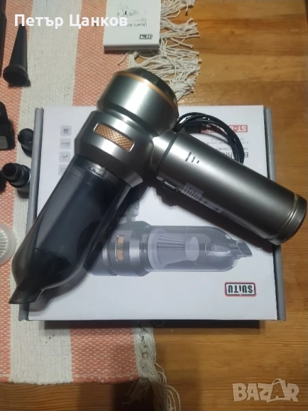 Нова прахосмукачка за кола и тапицирани мебели.С USB зареждане,издържа 30-40 минути в работен режим.С добра всмукателна мощност,лека и практична.