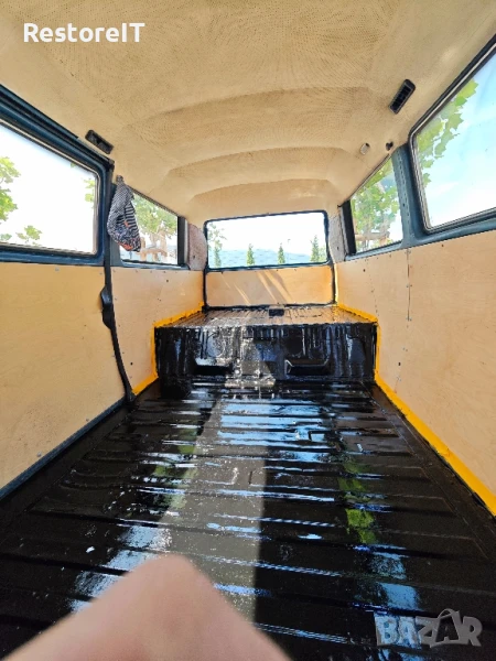 Бусът е цялостно изкърпен с чисто нови панели, закупени от Германия. Кърпени са задните панели, степенките, пода на шофьора и пасажера Третиран е с парафин по кухините и след това е боядисан двуцветно с боя раптор. Отдолу шасито е без никакви забележки и ръжди.
