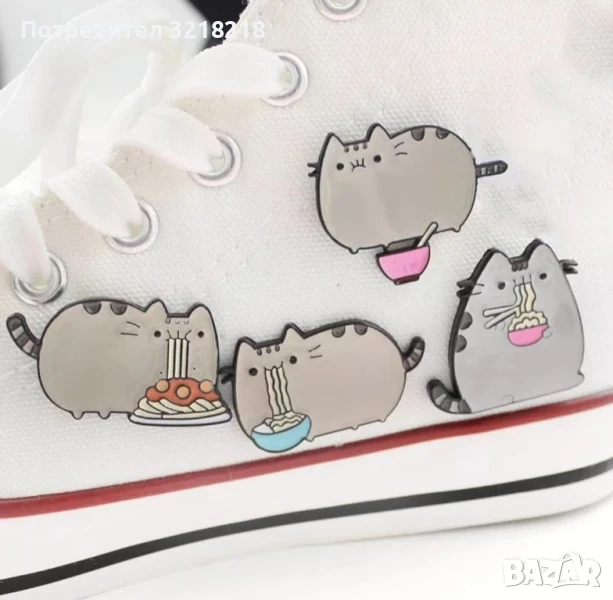 Аксесоар значка Pusheen коте за дрехи, обувки, раница. Изработени от безопасни материали без остър връх. Лесни за закачане и сваляне. Цената е за 1 брой значка.