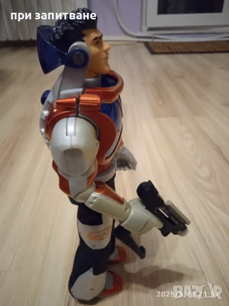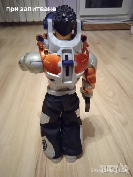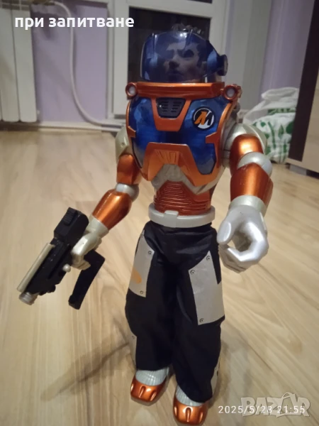 Подвижни елементи ръце крака, панталон и др., бутонът отзад работи- повдига бронята и премества шлемът. Всичко е налично.