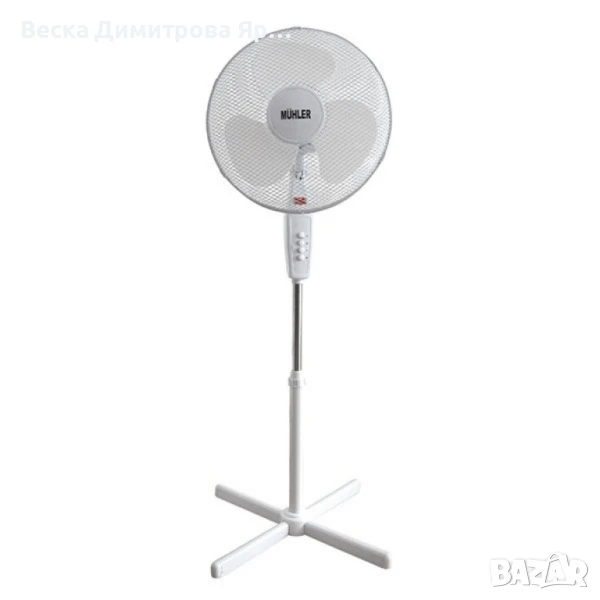 Вентилаторът Muhler е изключително енергийно ефективен, с мощност от 40W, което го прави икономичен избор за охлаждане на вашия дом или офис. Трите степени на скорост ви позволяват да регулирате въздушния поток според вашите предпочитания и нужди. Функцията за осцилация разпределя въздуха равномерно, осигурявайки комфорт в цялото помещение.Размер на перките: 16 инча; Цвят: Бял, бяло с черно, черно с червено; Материал на перките: Полипропилен (PP); Тегло на перките: 105 грама; Мрежеста решетка: 1.4 мм; Степени на скорост: 3 (ниска, средна, висока); Височина: 1.30 метра; Диаметър на стойката: 60 сантиметра; Мощност: 40W; Напрежение: 220-240V; Честота: 50-60Hz.